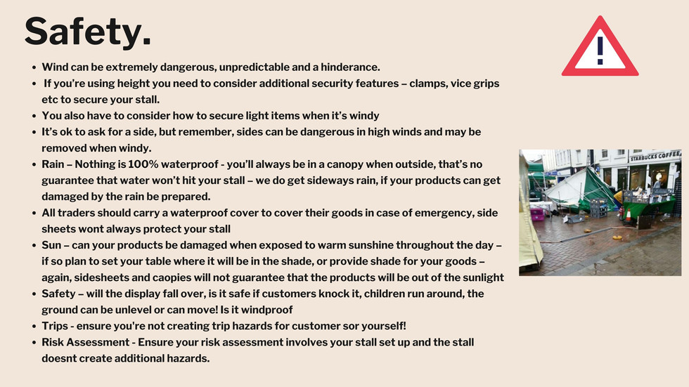 To help you plan we've put together some information about our stalls and some tips to safely plan your display!