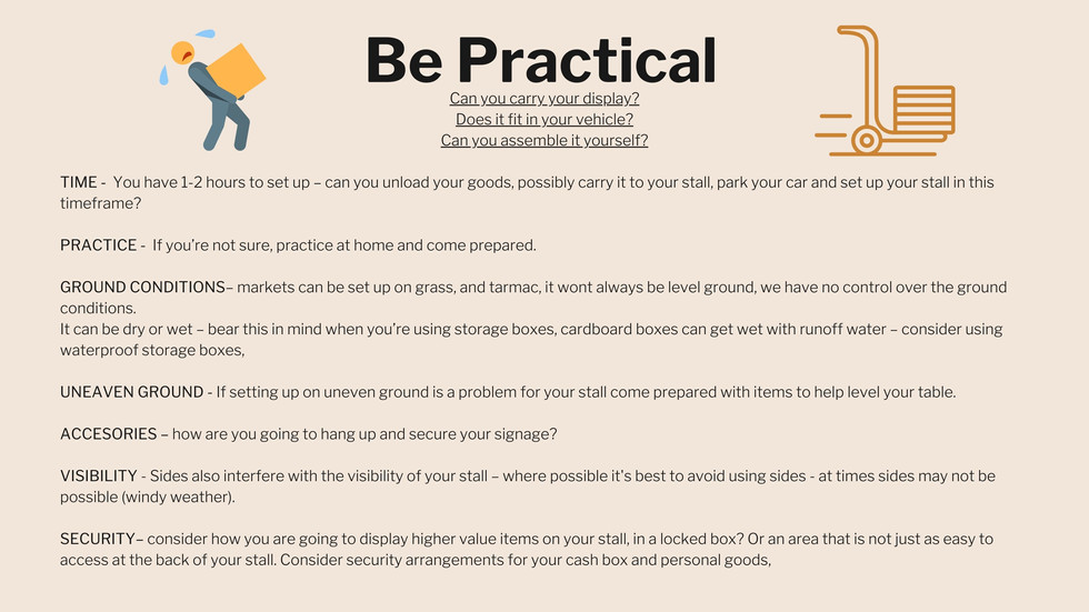 You usually will have a limited amount of time to set up your stall - planning is essential.
